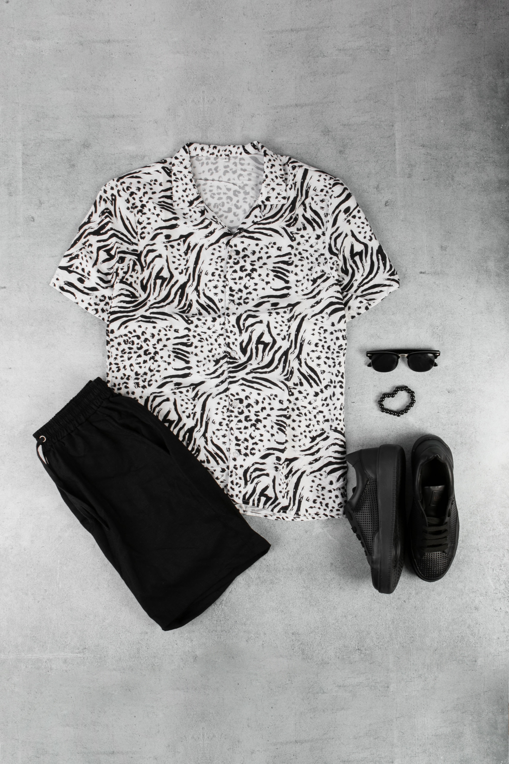 Camisa de fibrana con estampa de color blanco con detalles en negro. De tela liviana, ideal para los dias de calor. Muy comoda al uso y facil de combinar. Es una prenda ideal para esta temporada!