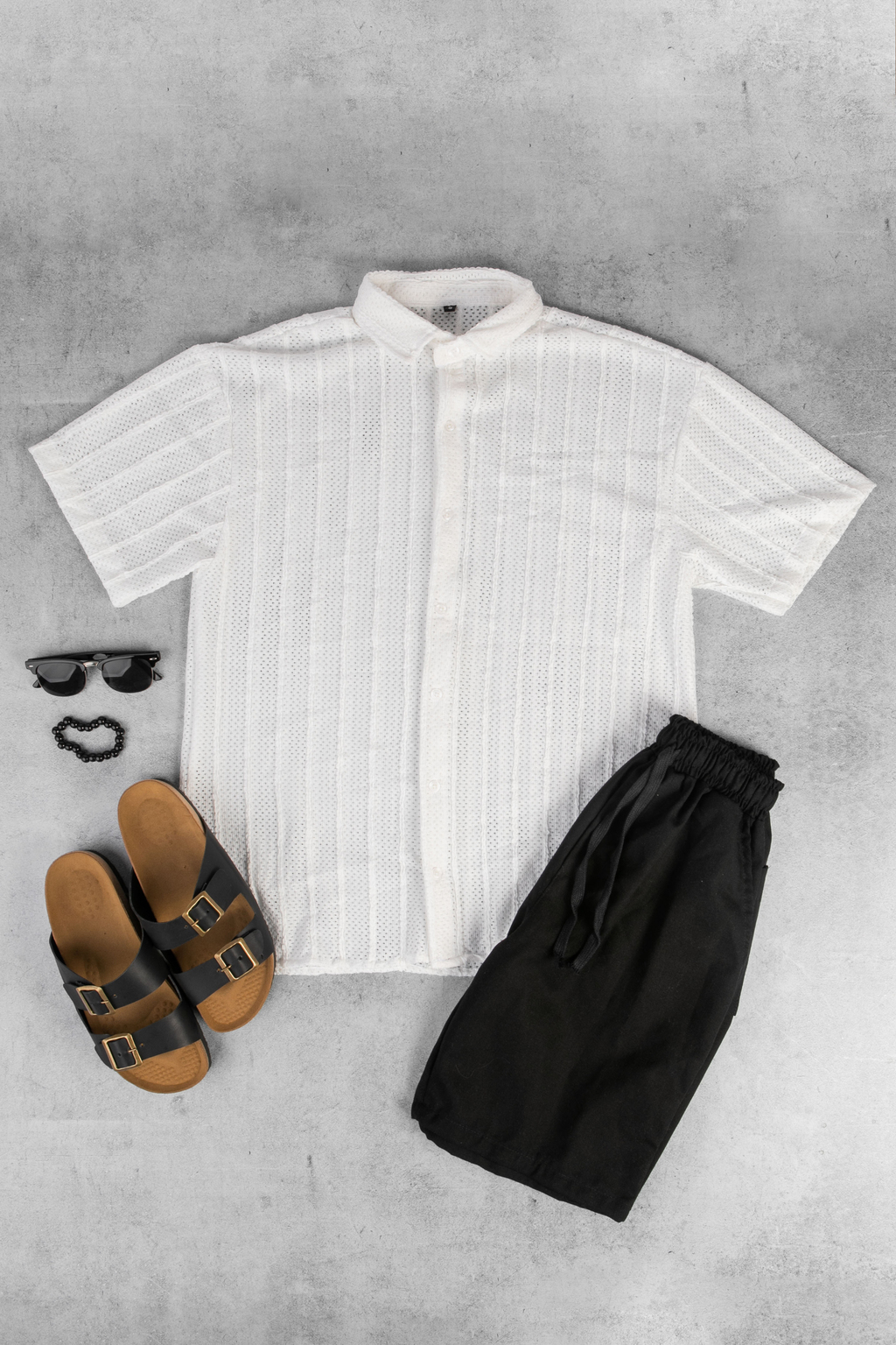 Camisa de bambúla desagujada de color blanco, con micro perforaciones que la hacen súper fresca. De molderia holgada. Una camisa ideal para este verano. Combina muy bien con bermudas y pantalones.